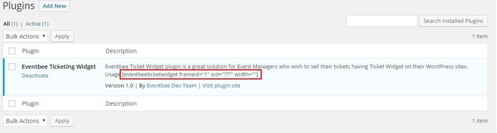 Type “eventbee” in the search field and click on Install Now - Click on Activate Plugin link and on successful activation you’ll be taken to Installed Plugin screen.
